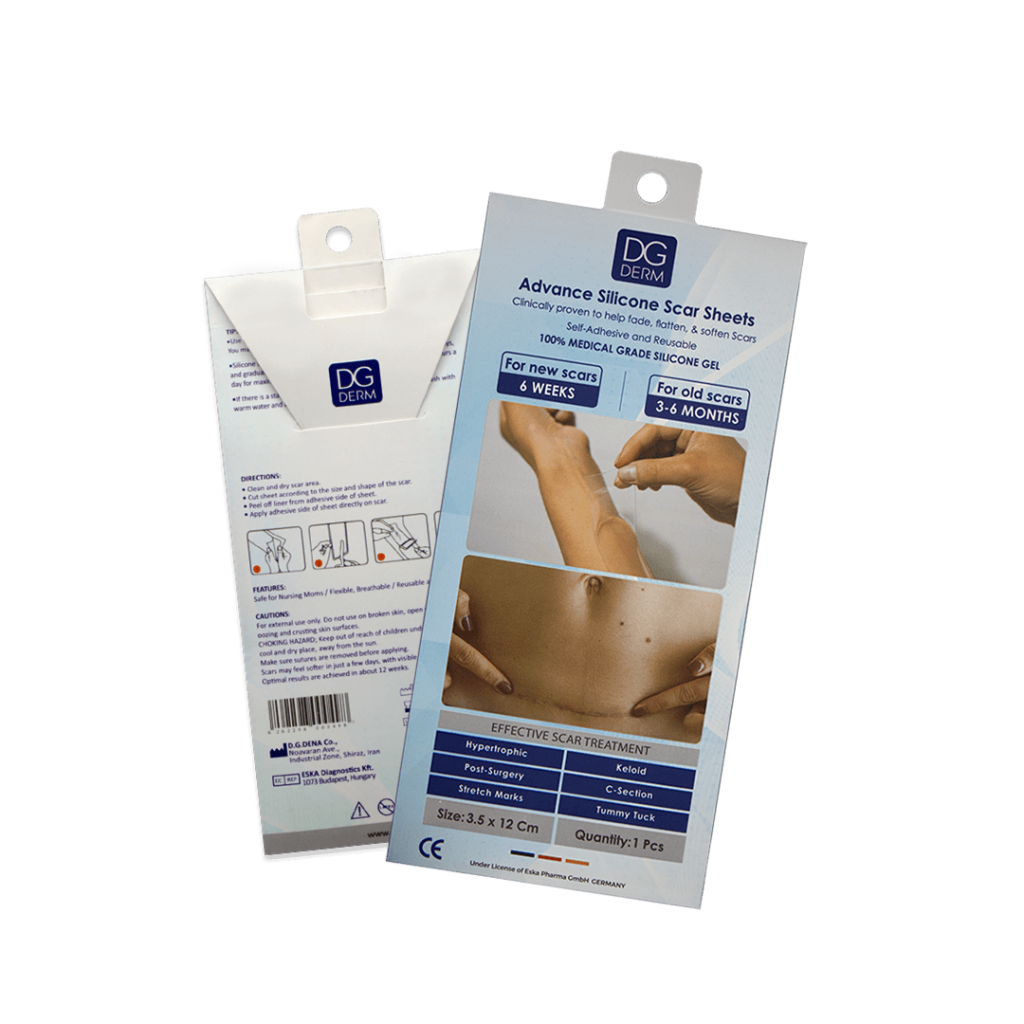 • For maximum effectiveness, it is recommended to wear the DG. Derm® Scar Sheet for 12 to 20 hours during the day, and during the remaining hours, you can use the DG. Derm® Scar Gel 3 to 4 times. (For sensitive skin, it is better to start treatment with one hour per day and gradually increase the treatment duration to 12 hours per day if no sensitivity occurs)