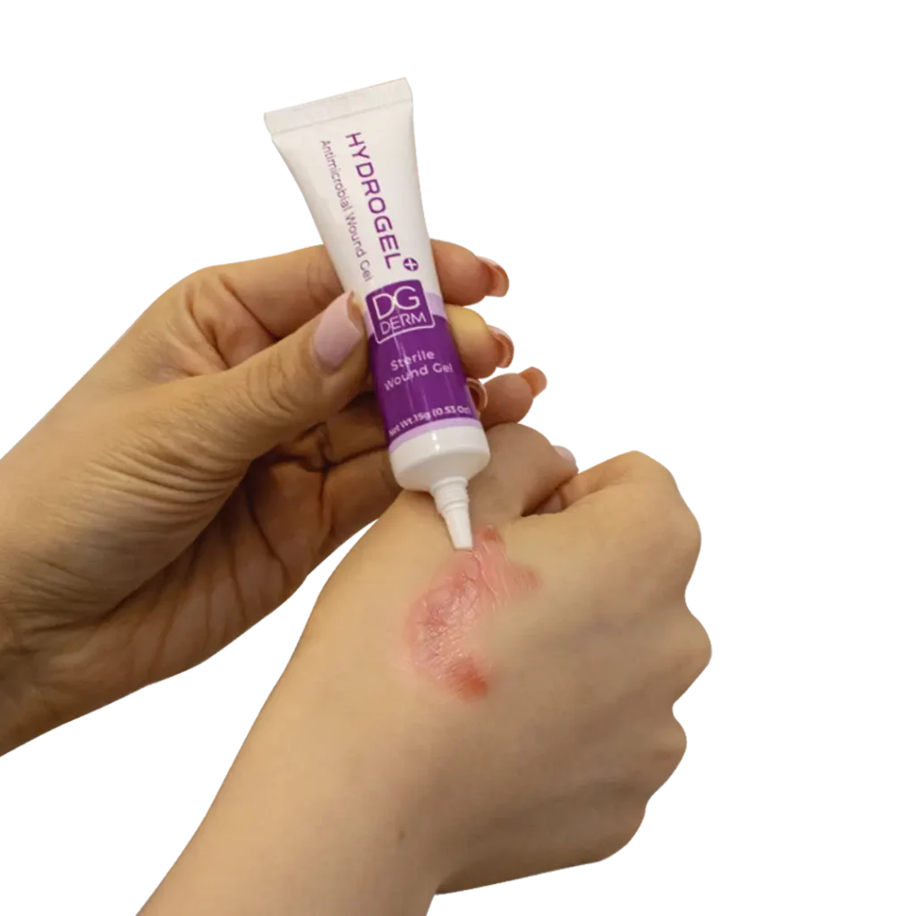 DG. Derm Antimicrobial Hydrogel can be applied directly to the wound site or by soaking it in a secondary dressing. If necessary, the product can be gently spread with a suitable sterile applicator. For cavity wounds, fill the wound with the dressing and then use the secondary dressing. Make sure to close the product cap immediately after use. Avoid contact between the tube tip and the wound, body parts, or contaminated surfaces. Do not use this product continuously for more than 30 days. If no improvement occurs, consult a specialist.