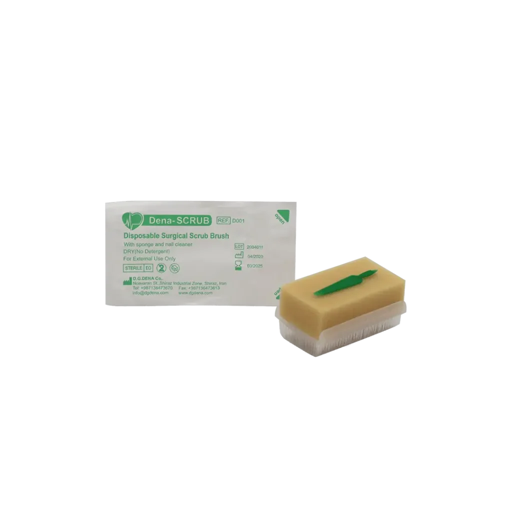 With more than 20 years of successful experience designing and manufacturing medical equipment, D.G. Dena has produced and presented Surgical Scrub Brush under the Dena Scrub brand. The Scrub Brush includes a brush, sponge, and nail cleaner. The specialized brush has soft and standardized bristles to prevent skin damage. This product is designed ergonomically and made from standard and medical-grade materials, making it completely hypoallergenic. The sufficient and standard amounts of disinfectant materials (such as povidone-iodine or chlorhexidine) in the models containing disinfectant substances, not only have excellent effectiveness but also save costs and reduce the consumption of disinfectant materials in healthcare facilities. Dena Scrub Brushes offer a wide range of efficacious antimicrobial formulations specifically designed to enhance performance while reducing irritation to the skin.