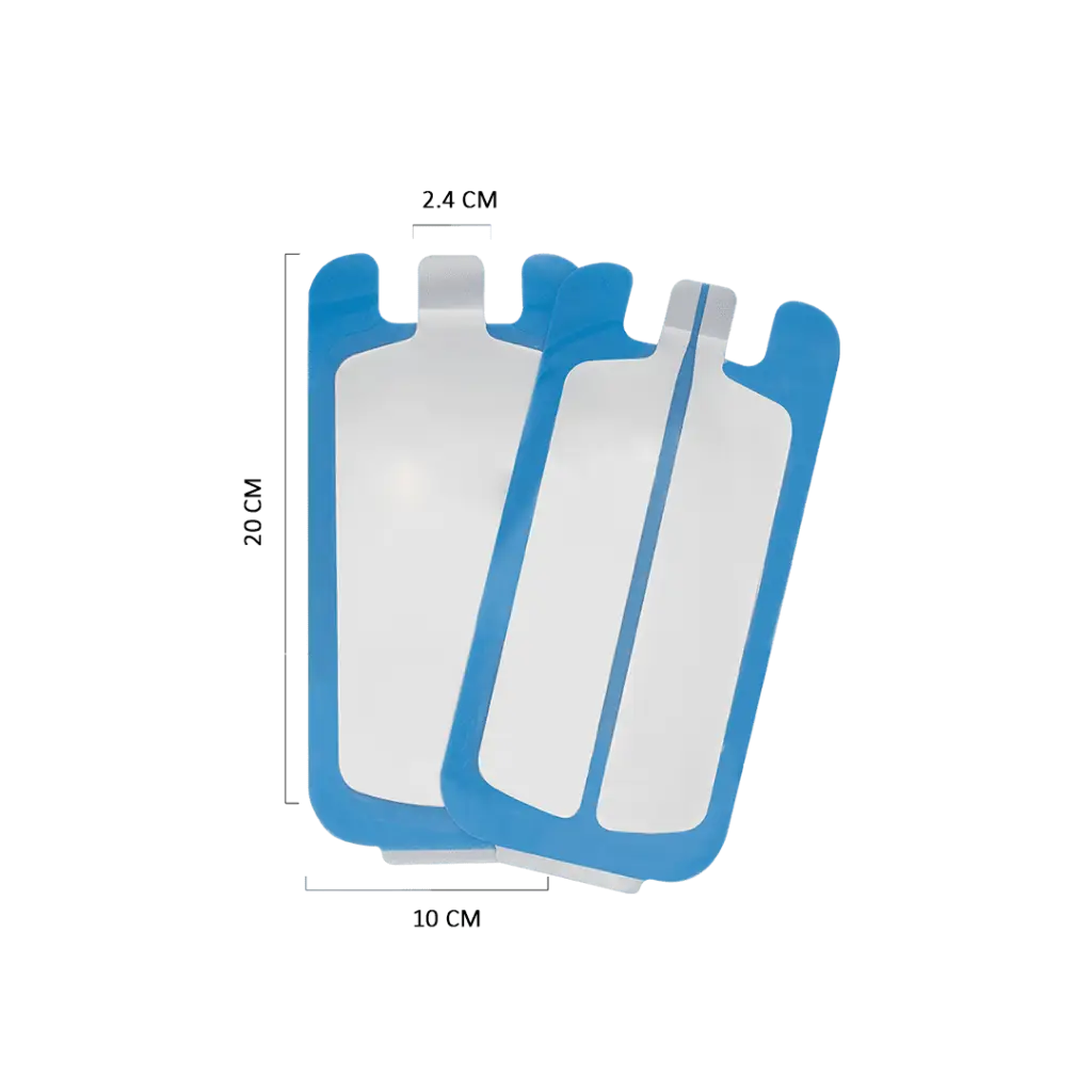 - Conductive area: Aluminum / PET film with acrylic-based hydrogel, biocompatible