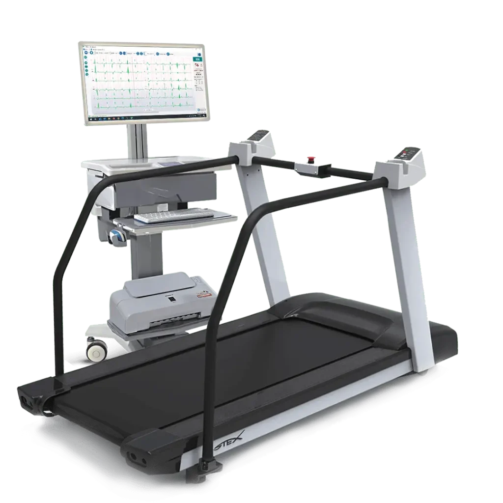 The treadmill features an adjustable incline that gradually increases as the test progresses. Continuous blood pressure and heart rate monitoring to ensure that any abnormalities are detected and documented. An electrocardiogram (ECG) is used simultaneously to monitor the heart’s electrical activity.